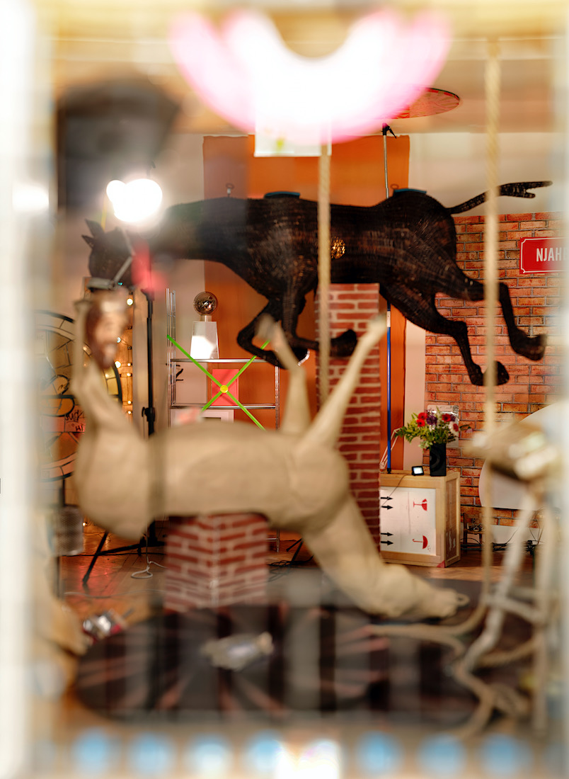 § Auf einer Etage im Kunsthaus Centre PasquArt in Biel wird das ganze angereicherte Archiv von Haus am Gern verteilt. Von einer Plattform vor den 11 Fenstern wird die Situation mit einem Gigapan-Kameraroboter mit langer Brennweite und kaum Schärfentiefe aufgenommen.
